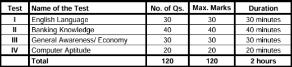 Online test will consist of Objective Tests for 120 marks and Descriptive Test for 50 marks. The Descriptive Test will be administered immediately after conclusion of the Objective Test and candidates will have to type their Descriptive Test answers on the computer.